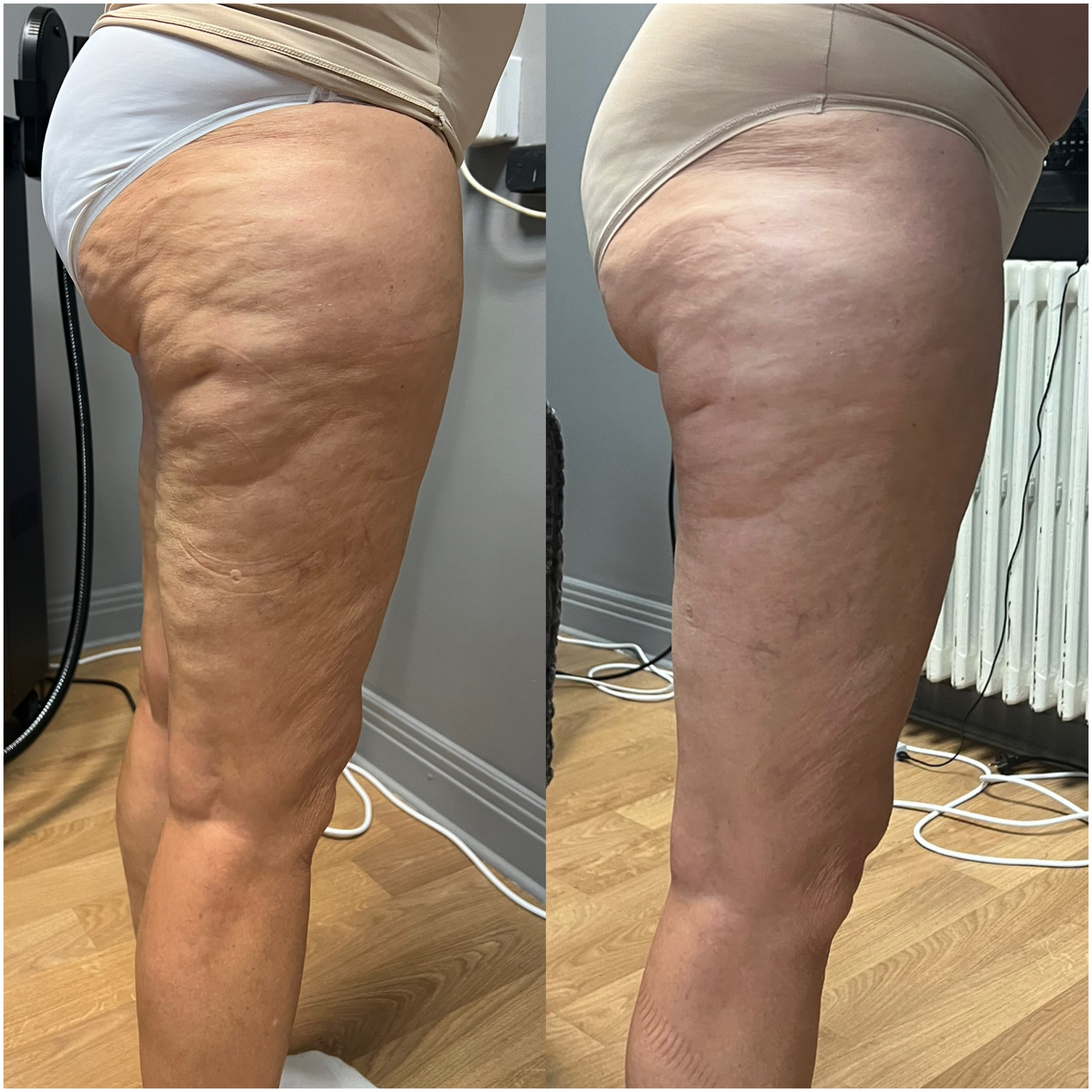 ATHOR har en specifik teknik som kan riktas mot alla stadier av celluliter (nivå I–IV), vilket gör att vi kan behandla både ytliga och mer djupa ojämnheter.